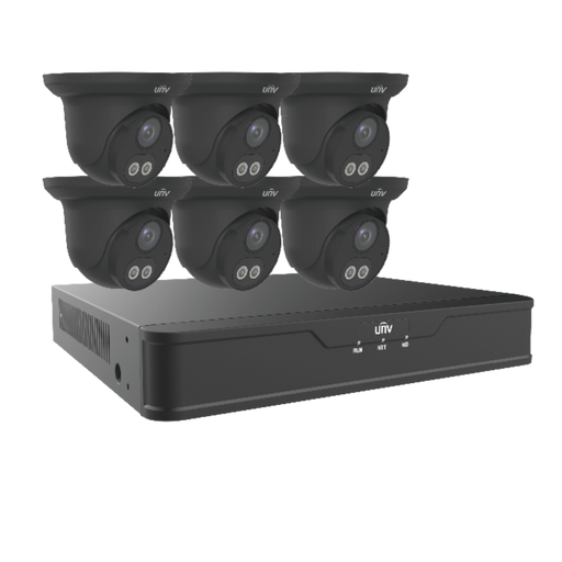 View full detailsUniview Dual Light 8 Channel Surveillance Kit with (6) 4MP Turret Domes In Black, (1) 4K 8 Channel NVR and 2TB HDD