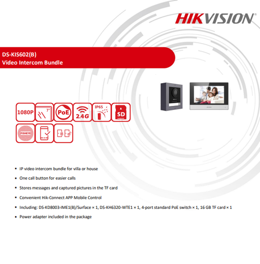 IP video intercom bundle for villa or house One call button for easier calls Convenient Hik-Connect APP Mobile Control Including: DS-KV6113-WP...