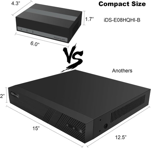 View full detailsHikvision iDS-E08HQHI-B 1TB Hard Drive Included, 8 Channel 2MP 1080P Turbo DVR Digital Video Recorder, Compact Size, 4K HDMI, Compatible with Hikvison 5MP or Lower Resolution Coax TVI Cameras, Hik-Connect App