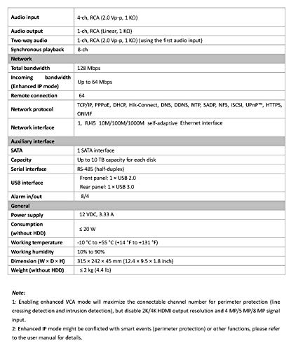 Brand: HikvisionFeatures: Support cameras up to 8MP HD-TVI, 5MP AHD, 5MP HD-CVI, 8MP IP CAMERAS (4ch), and regular analog cameras Simultaneous 4K ...
