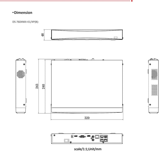 Hikvision DS-7604NXI-K1/4P 4 Channel 1U PoE 4K 8MP Network Video Recorder NVR, Plug & Play, H.265 International Original English Version, Compatible with Hik Vision Hik-Connect, Hard Drive Not Included