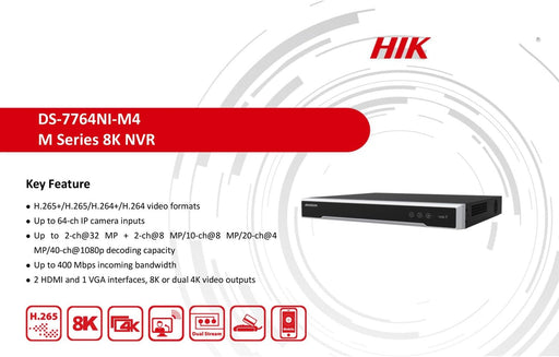 View full detailsHikvision DS-7764NI-M4 64 Channel 1.5U 8K NVR, Dual 4K IP Network Video Recorder, 2 HDMI and 1 VGA interfaces, Without POE, Compatible with Hikvision Hik-Connect, English Version, Hard Drive Not Included