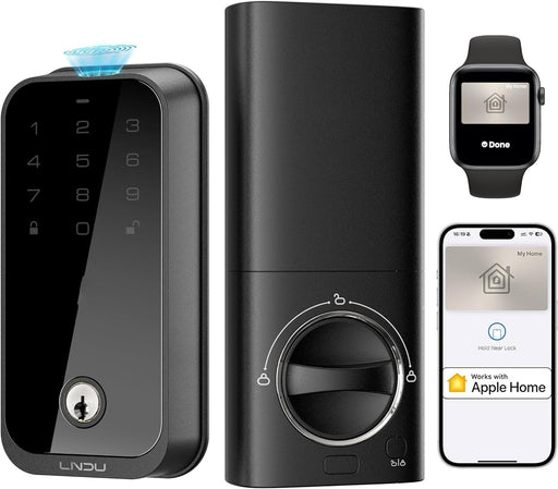 Apple HomeKit-Integrated Smart Entry: The LNDU HK01 door lock seamlessly integrates with Apple HomeKit, allowing users to store a secure Home Key ...